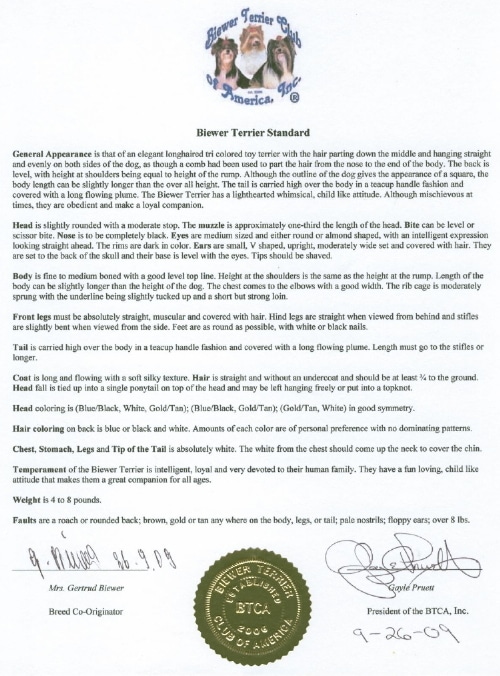 The Biewer (pronounced Beaver) Terrier breed originated in Germany and was first imported into the United Stated in 2003. Thereafter, the breed has gained full AKC recognition in record time as part of the toy group. These beautiful dogs are known for being highly adaptable and it is NOT a low maintenance dog. Hence, Biewer Terrier's have a long and silky coat that needs constant grooming and/or trimming. A strict and healthy diet is crucial to ensure their healthy growth and development. You can access more information on Biewer Terriers in the link below.